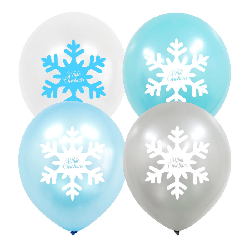 크리스마스풍선 30cm [화이트 크리스마스 눈송이 펄혼합] 10입 / 3518632