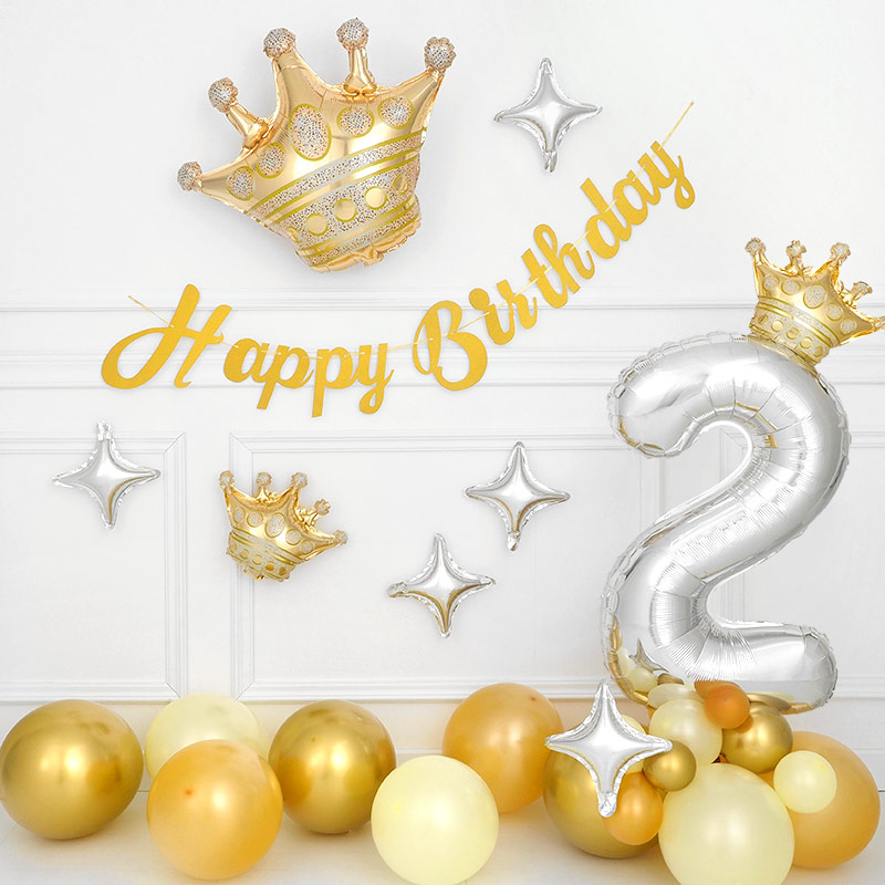 - 생일은박풍선 미니쉐입 왕관 골드 / 3555870
