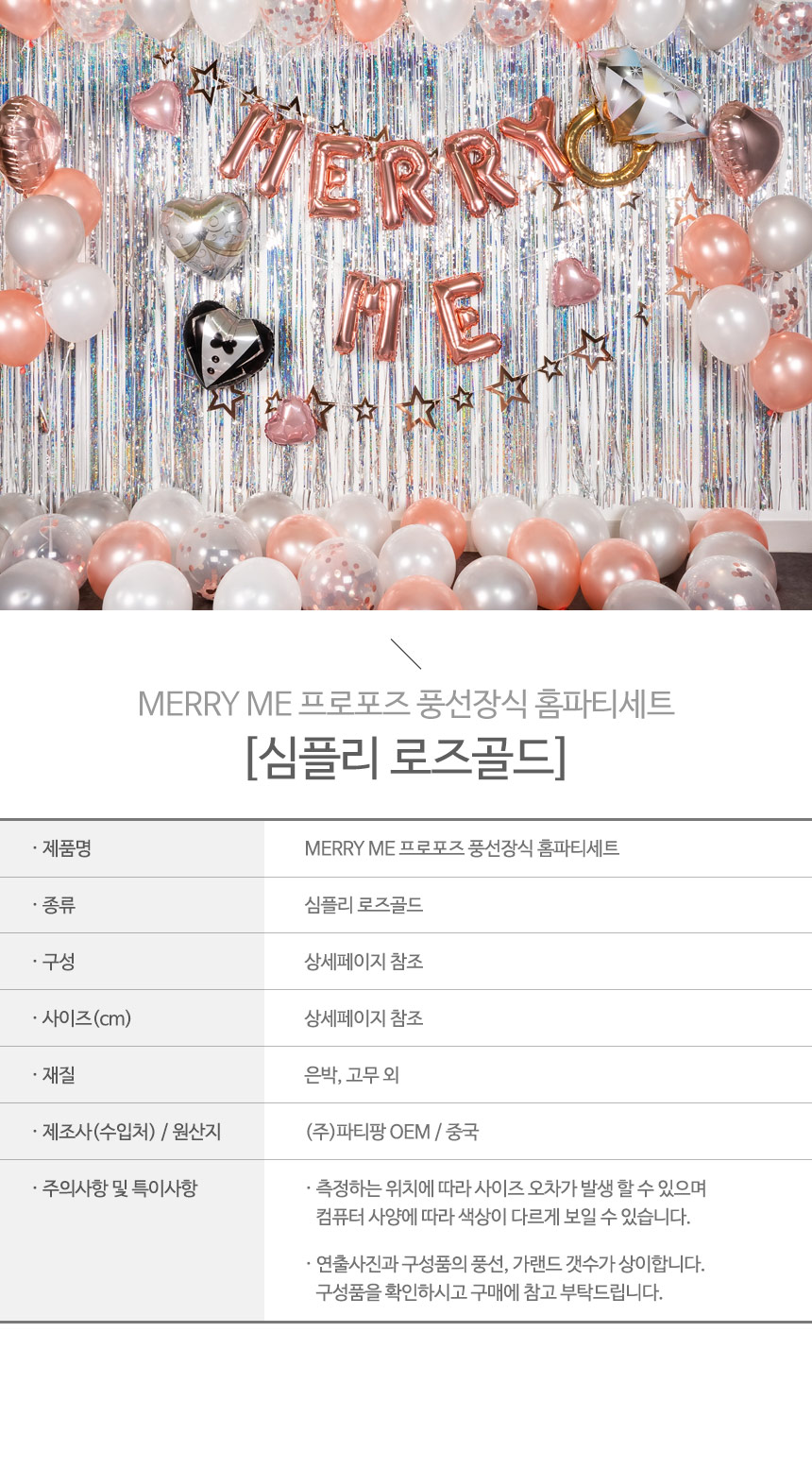 MARRY ME 프로포즈 풍선장식 홈파티세트 [심플리 로즈골드] / 3522387