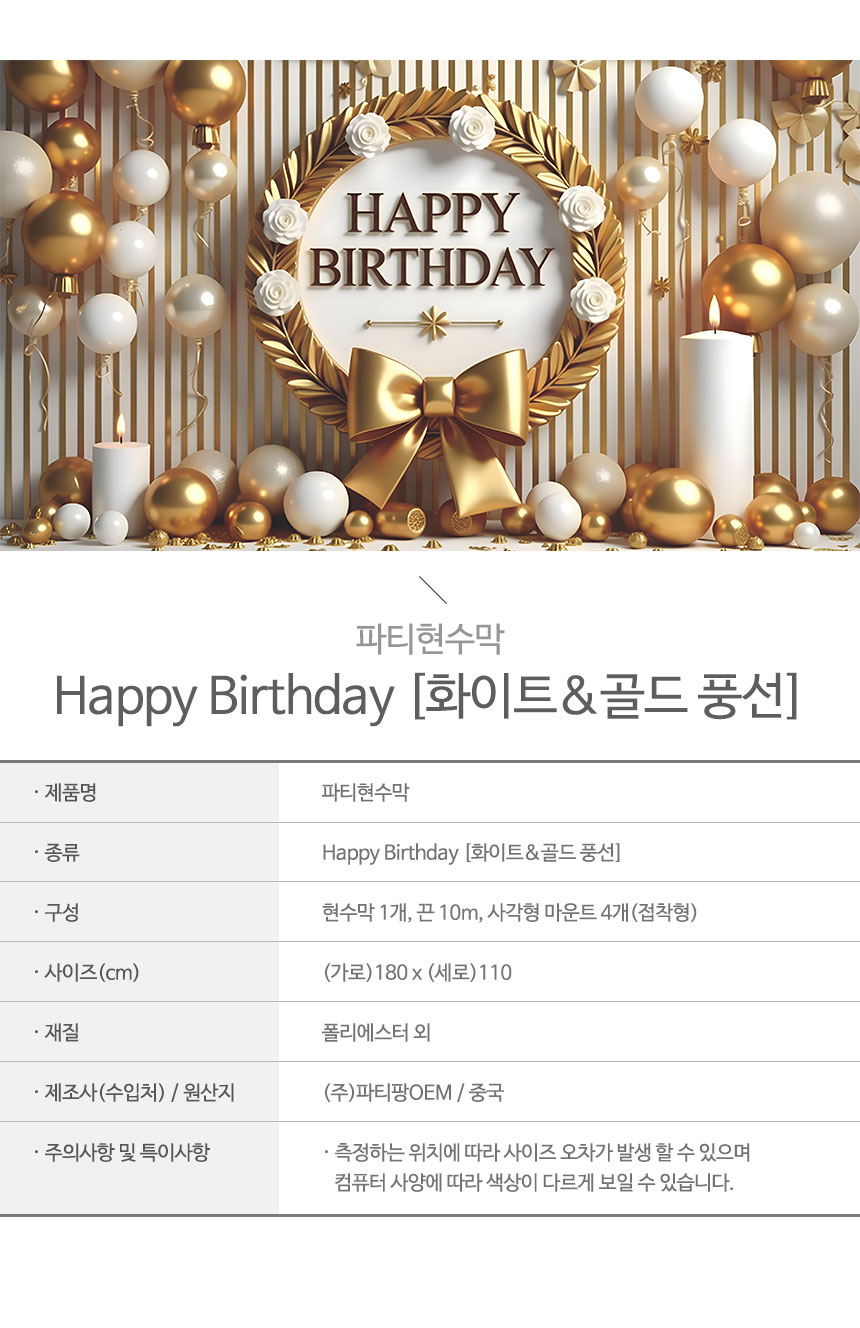 Happy Birthday 파티현수막 [화이트&골드풍선 스타일 / 포토존 데코] 180*110cm / 3620335