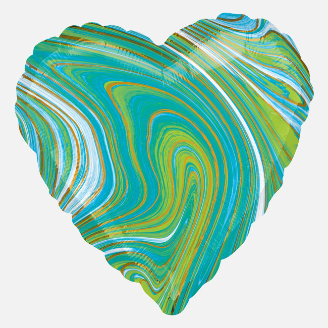 [ANAGRAM] 18인치 하트은박 헬륨풍선 마블 블루그린 [차량배달or매장픽업] / 3562303