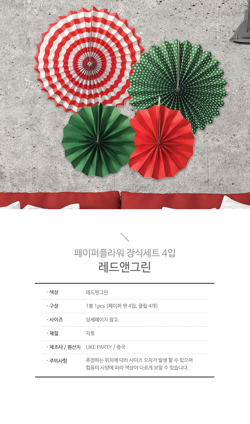 페이퍼플라워 장식세트 4입 [레드앤그린] / 9497