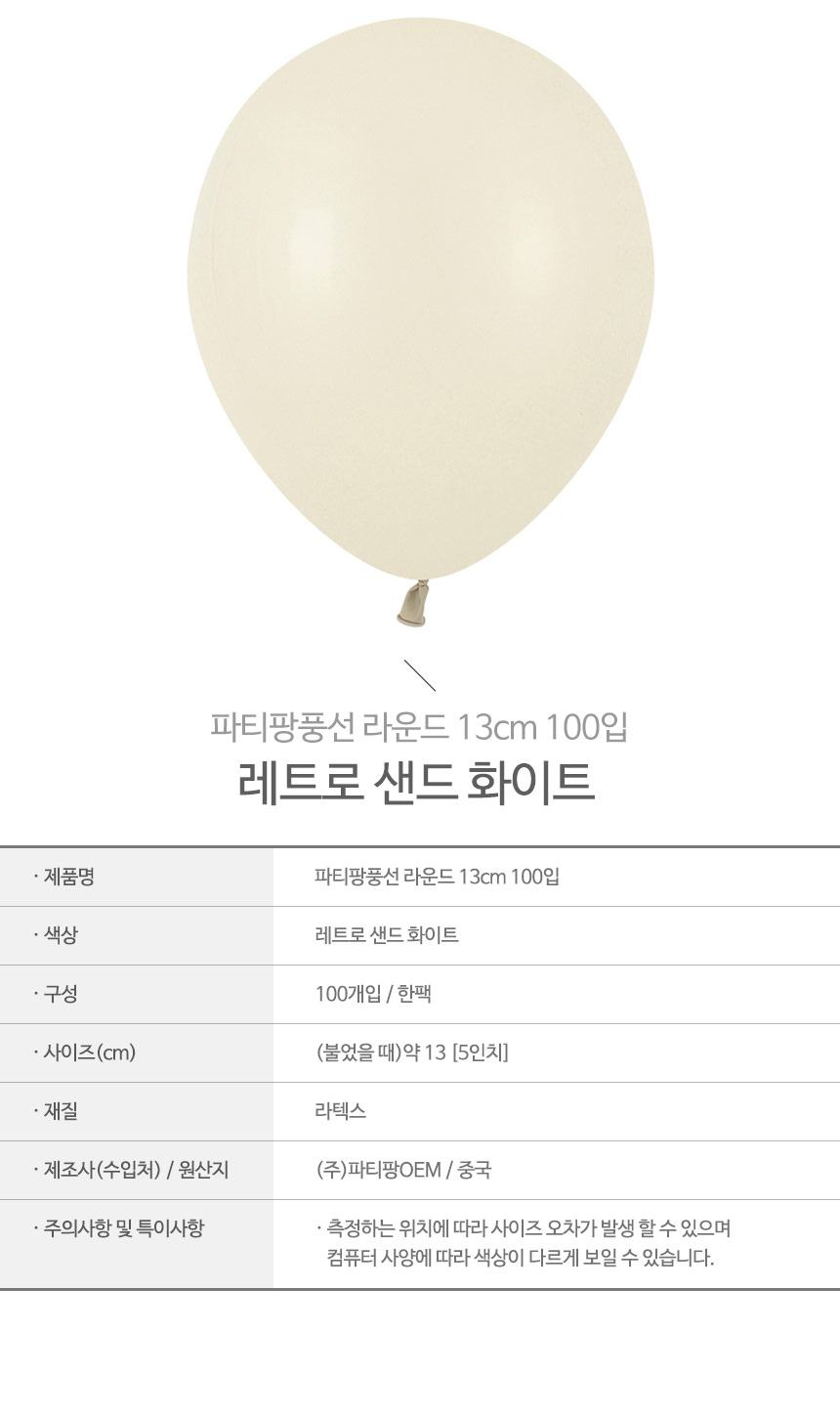 파티팡풍선 라운드 13cm 레트로 샌드 화이트 100입 / 3557071